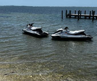 Cruise the stunning St. Joseph Bay waters at speeds of up to 40 mph, whether you're enjoying the ride solo or with a friend or family member. Each jet ski accommodates up to 1 driver and 1 passenger (500 lbs total), making it perfect for groups who want to experience the fun together. Jet skiing in our beautiful waters is an unforgettable adventure, and we'll make sure you're fully prepared! Before you head out, we'll provide thorough operational instructions to ensure you're comfortable and confident.